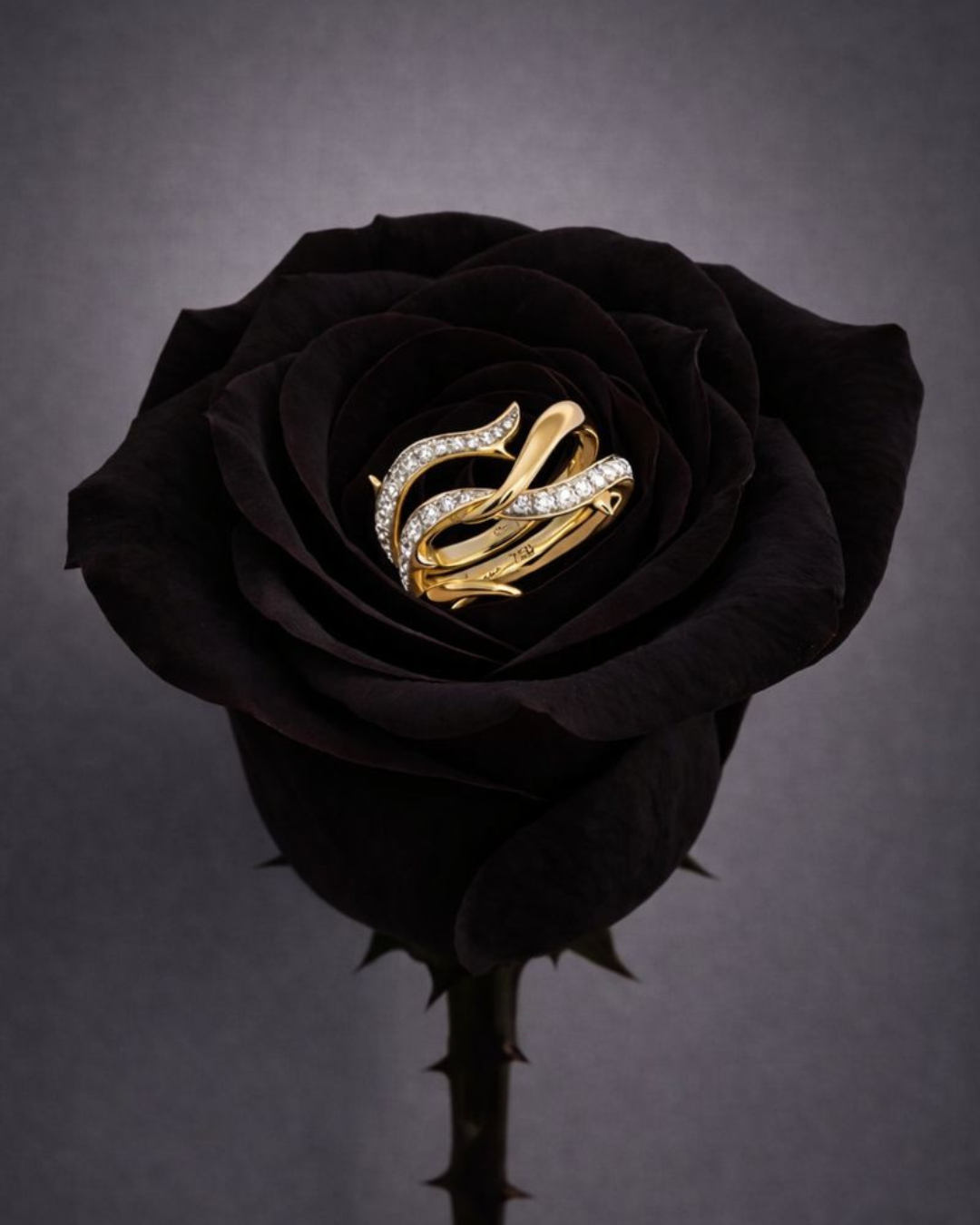Bold yet refined, this ring captures the natural elegance of intertwining rose thorns, a symbol of courage. Designed as two separate pieces, it can be worn together, on different fingers, or mixed and matched with other rings to create a personalised look.