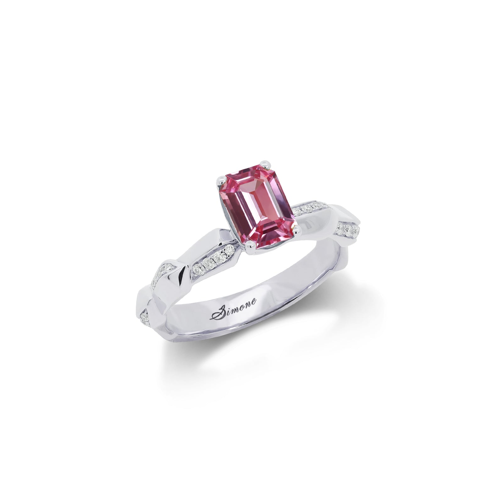 The Duet Collection takes inspiration from Cupid's arrows while encompassing the uniqueness of modern architectural design. This stunning version of the Duet engagement ring features a modern step-cut 1.03-carat Pink Sapphire.