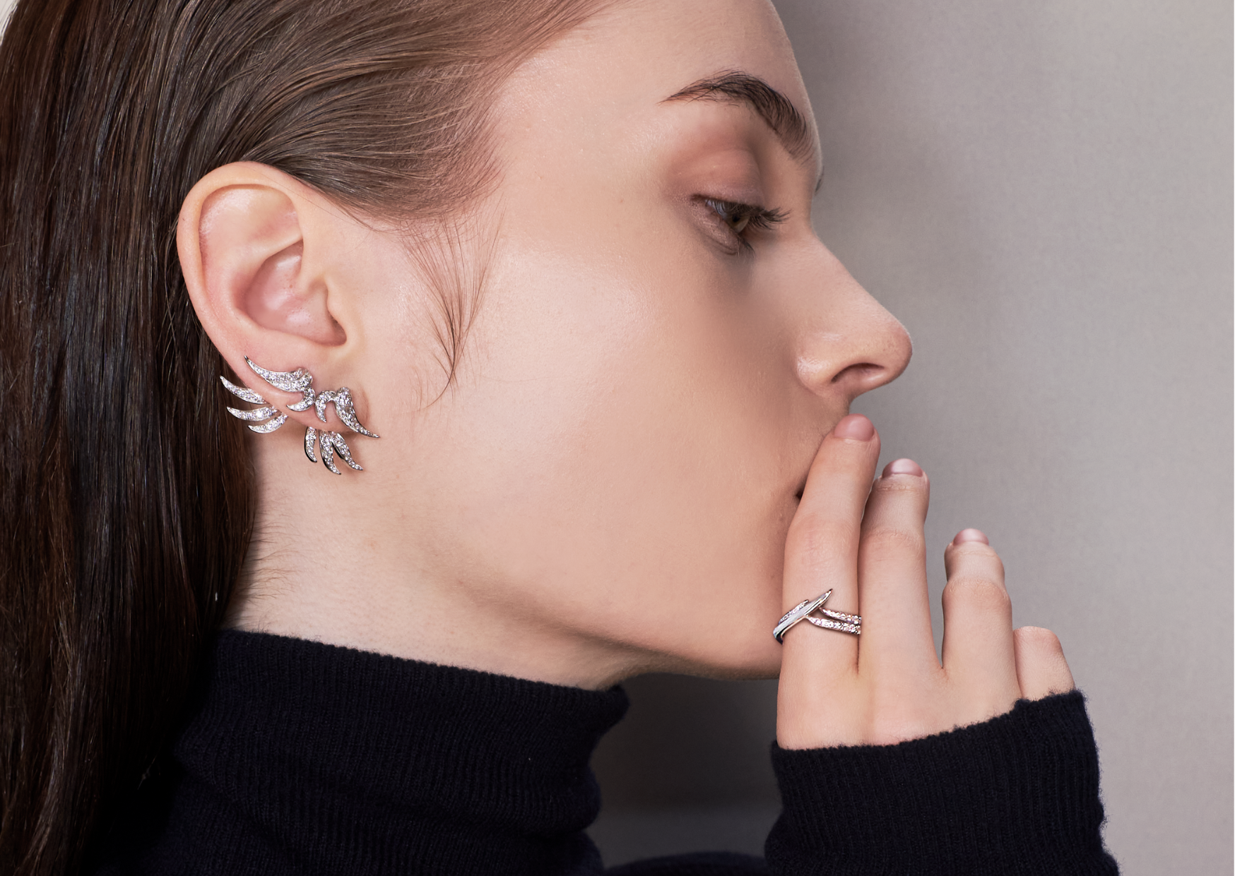 Taking inspiration from the grace and freedom of flight, the BIRDS IN POETRY fine jewellery collection is distilled from its high jewellery counterpart - capturing the lyrical beauty of feathers in motion through wearable everyday designs. Each piece evokes the lightness of wings unfurling, with curved, overlapping, and fluid lines that mirror the delicate rhythm of nature.